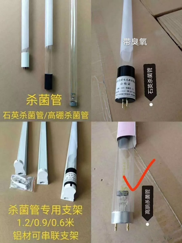 但市面上目前分為兩種消毒燈,一種是高硼管,一種是石英管,如下圖所示,高硼管紫外線殺菌燈的結(jié)構(gòu) (UV燈)實(shí)際上是屬于一種低壓汞燈,和普通日光燈一樣,利用低壓汞蒸汽(<10-2Pa)被激發(fā)后發(fā)射紫外線。不同的是日光燈的燈管采用的是普通玻璃,253.7nm紫外線不能透出來,只能被燈管內(nèi)壁的熒光粉吸收后激發(fā)出可見光。如果改變熒光粉的成分和比例,它就可以發(fā)出我們通常所見的不同顏色的光。